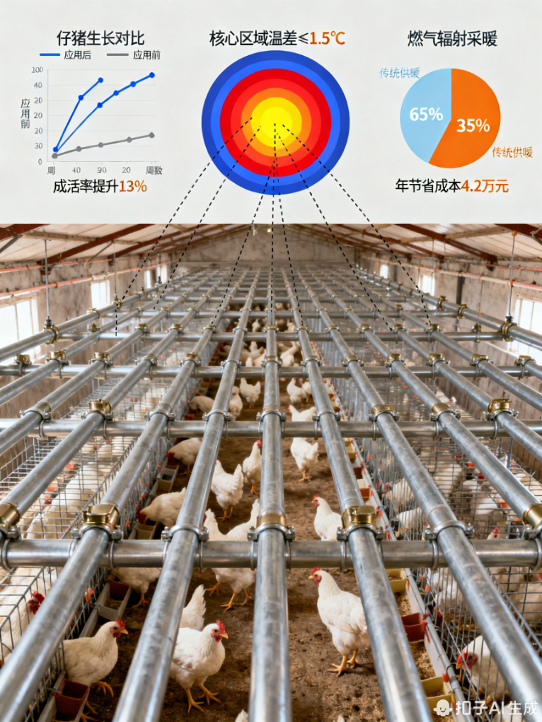 养殖供暖的革命性突破:燃气辐射采暖技术在畜牧养殖行业,冬季供暖一直是影响养殖效益的关键因素。传统供暖方式存在能耗高、温度分布不均、空气质量差等问题,严重制约着养殖效率的提升。淄博某规模化养猪场的实践案...